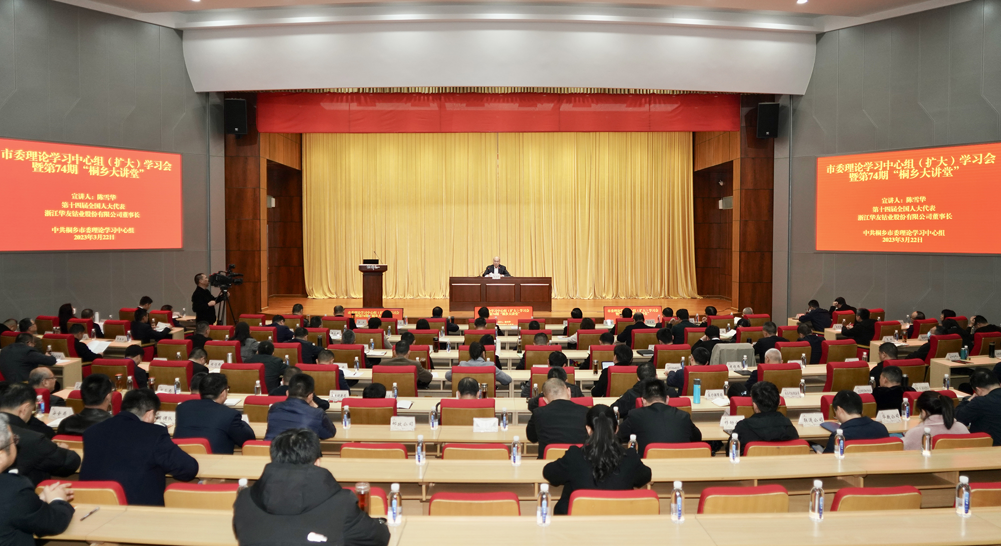 為深入學(xué)習(xí)貫徹黨的二十大精神和全國兩會(huì)精神,推動(dòng)學(xué)習(xí)成果不斷轉(zhuǎn)化為中國特色社會(huì)主義在桐鄉(xiāng)生動(dòng)實(shí)踐的實(shí)績實(shí)效,全力推動(dòng)經(jīng)濟(jì)社會(huì)高質(zhì)量發(fā)展,為奮力譜寫中國式現(xiàn)代化桐鄉(xiāng)篇章開好局起好步,今天(3月22日)晚上,市委理論學(xué)習(xí)中心組(擴(kuò)大)學(xué)習(xí)會(huì)暨第74期“桐鄉(xiāng)大講堂”舉行。市領(lǐng)導(dǎo)于會(huì)游、潘川弟、陳林根、朱國清等出席,市委副書記、市長王堅(jiān)主持。